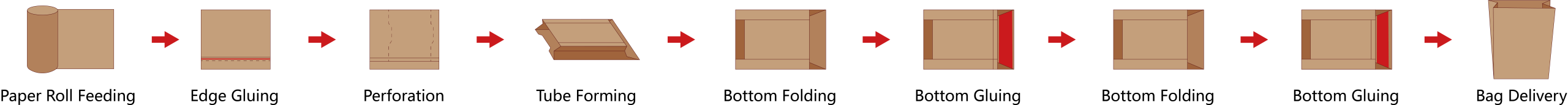The lead time is 15 working days for flat bottom paper bag machines, and 30 working days for square bottom and paper bag machines with handles.