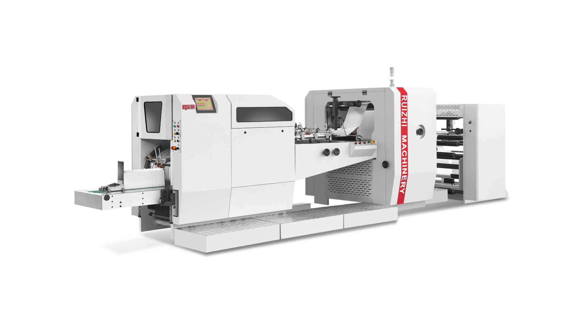 Ruizhi Machinery flat bottom paper bag machine, with the independent operation and coordination of modules (feeding, pre-punching, and bottom-folding) minimize downtime, streamline production, and ensure fast, efficient paper bag manufacturing.
